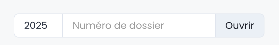 - Utilisation : Entrez l'année souhaitée (par exemple, 2023) pour circonscrire votre recherche uniquement aux dossiers ouverts durant cette période. Ceci est particulièrement utile pour naviguer dans les archives ou les dossiers anciens. Toujours en remplissant le numéro de dossier correspondant