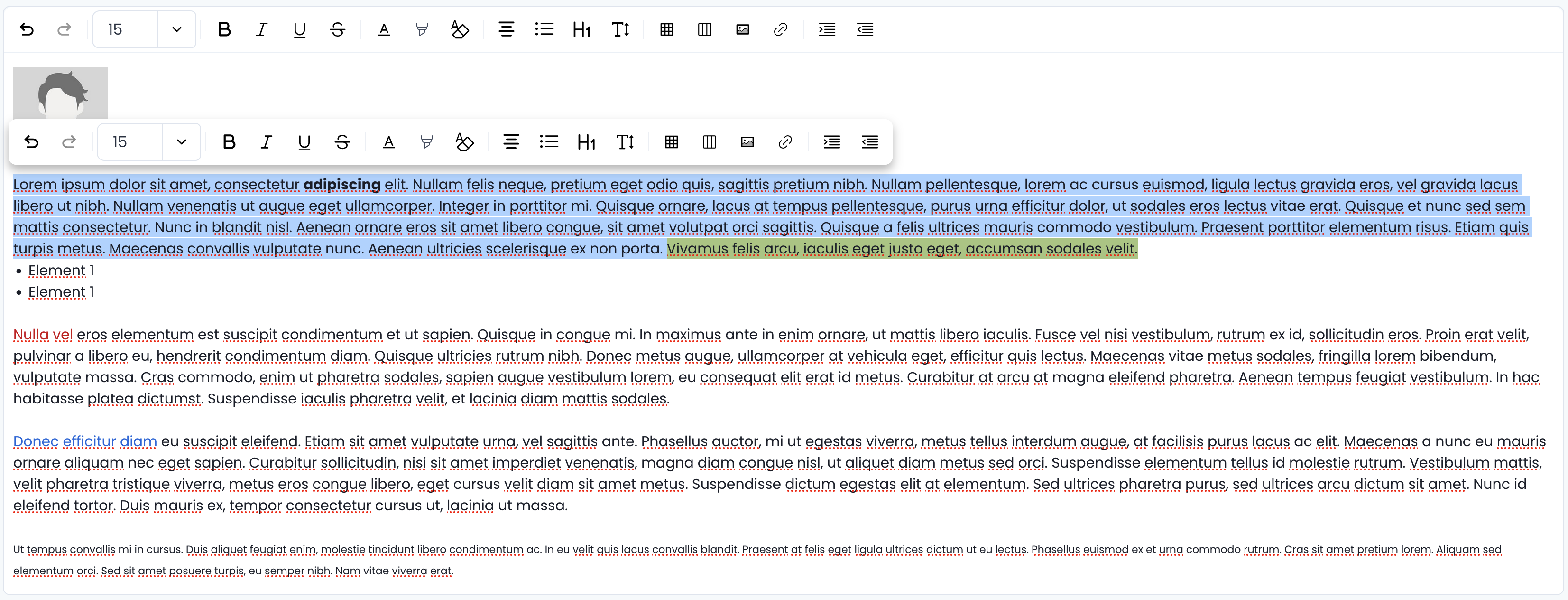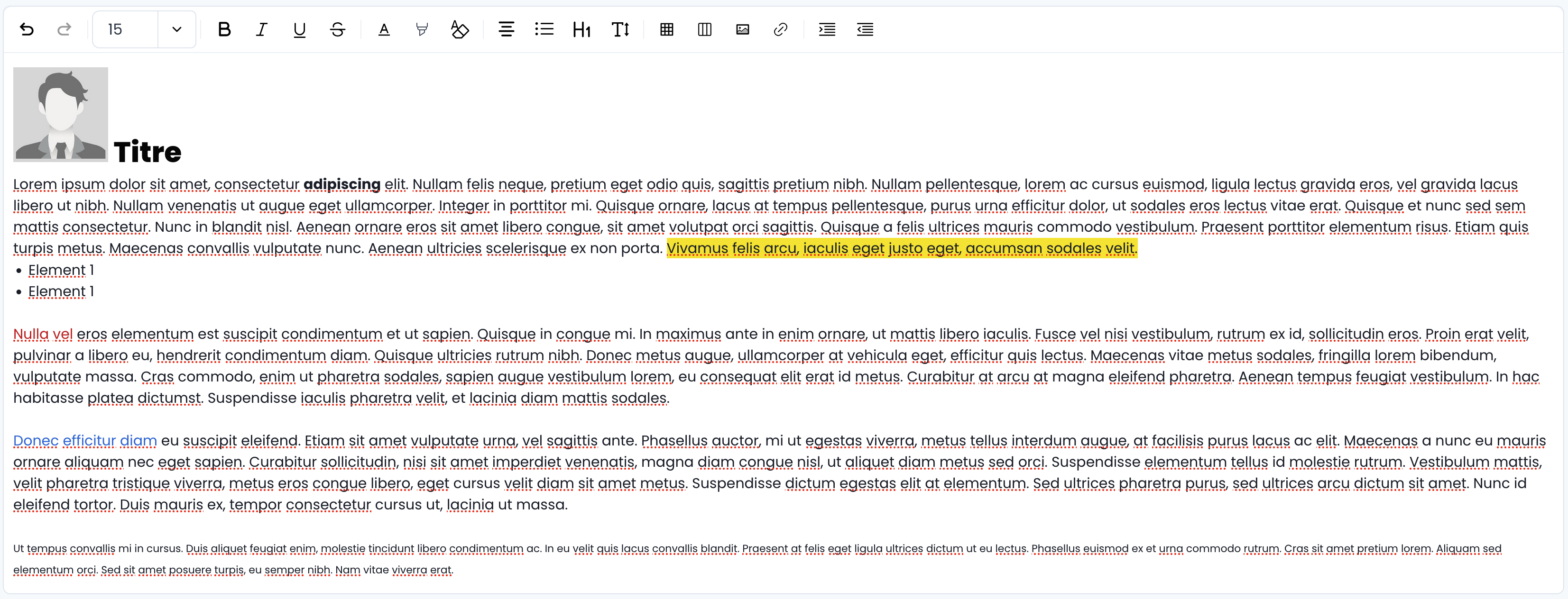 L'éditeur de texte riche (RichText editor) est l'outil que vous utiliserez pour rédiger tous vos courriels, vos notes internes et le contenu des documents générés par la plateforme. Il vous permet de formater votre texte de manière professionnelle, sans nécessiter de connaissances en code.