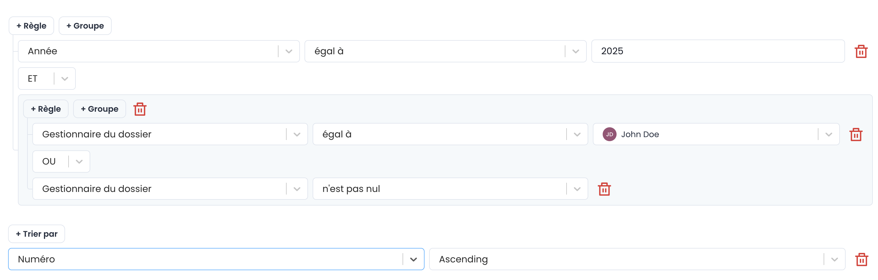 Pour créer un filtre, vous devez définir les critères de sélection que les dossiers doivent respecter :
