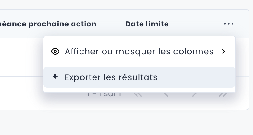 - Cliquez sur les (...) dans le haut du tableau et sélectionnez "Exporter les résultats"