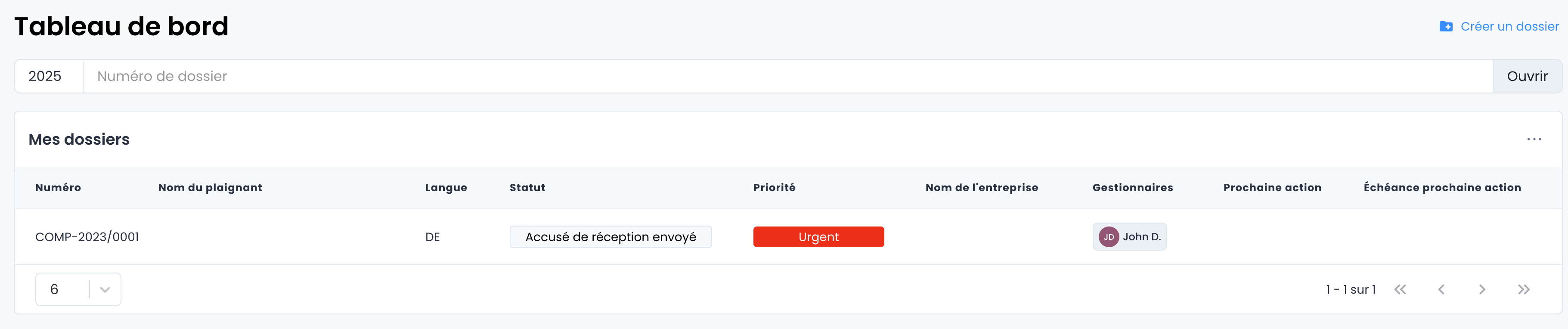 - Appliquez le filtre souhaité sur la page Dossiers.