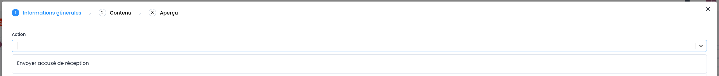 Par exemple, dans un statut En création, dans la création d'une action, nous n'avons que les modèles d'actions configurés pour ce statut qui apparaisse.